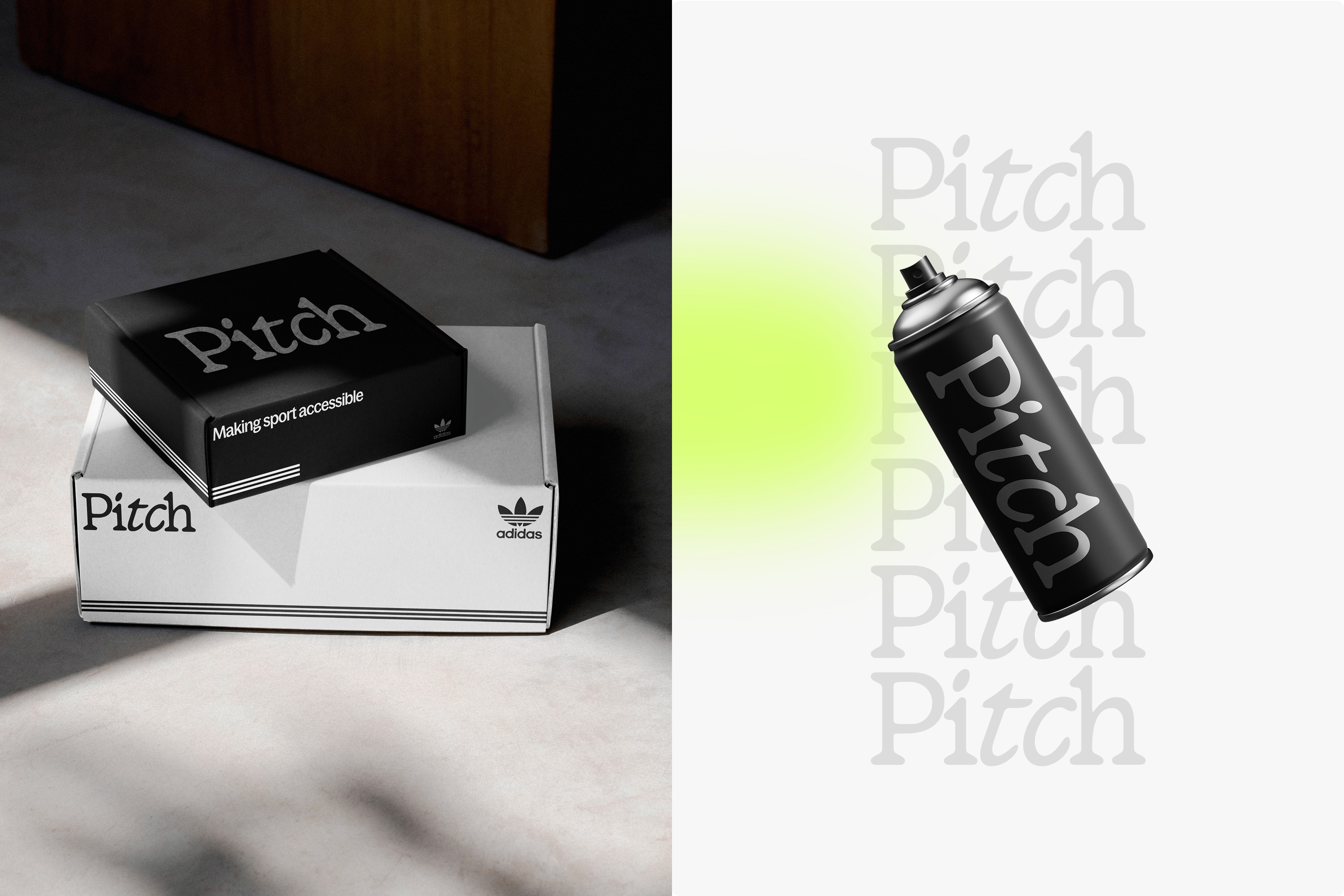 The idea of Adidas: Pitch is to use the power of imagination and creation to make things possible, through the use of a chalk based spray which acts as a temporary graffiti within the area, but has the ability to be removed by rain or washing down.